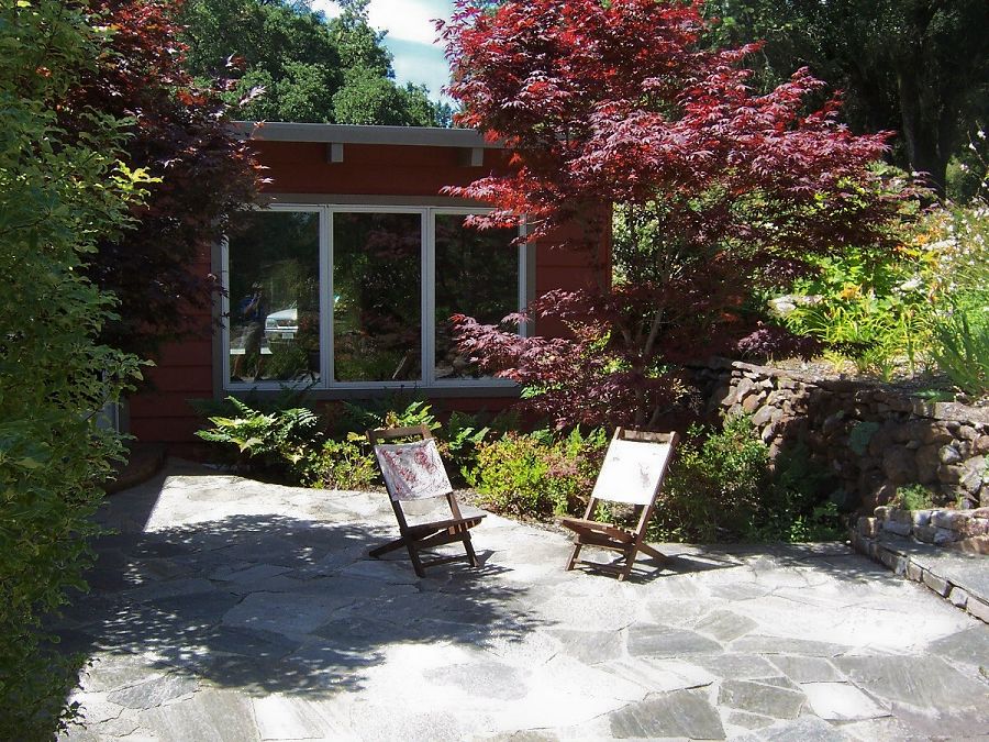 Fox/Gould Residence -- Remodeling and upgrading of an existing landscape. New paving, retaining walls, steps and plantings.