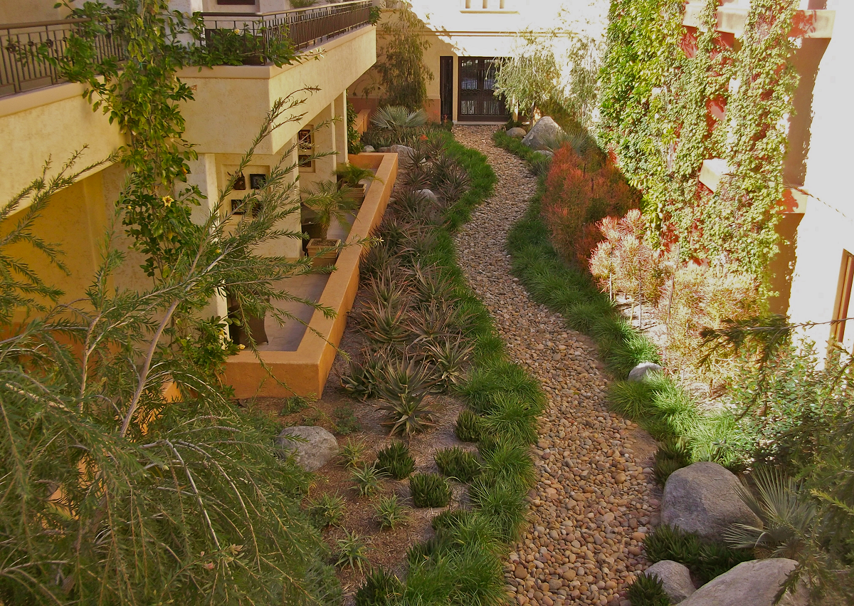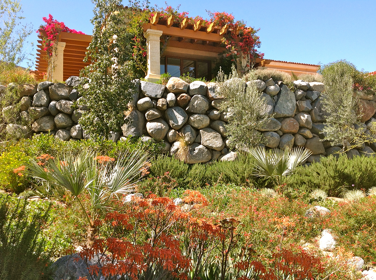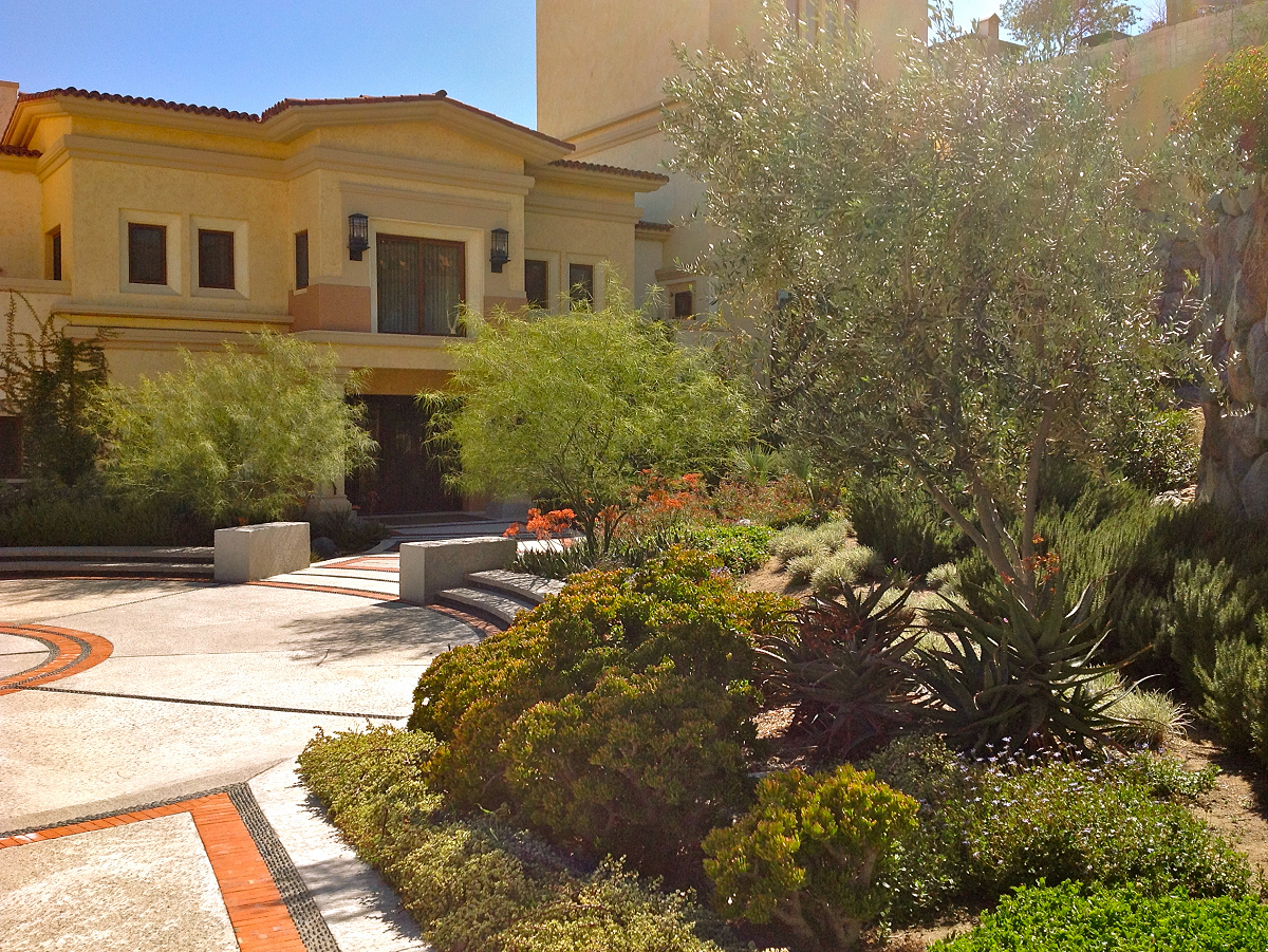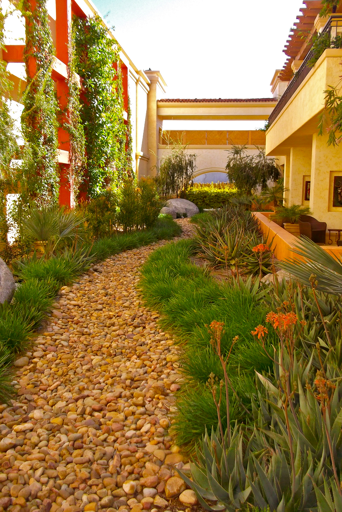 Santuario Hotel -- A small boutique hotel catering to businessmen, close to the U.S. Border crossing, that is part of a complex that includes a high end restaurant and banquet facilities. Project scope included hardscape and planting design for a circulation plaza, Hotel entry, and interior courtyard. Several enormous boulders left on site from construction were incorporated into the gardens, in addition to many stonework features.